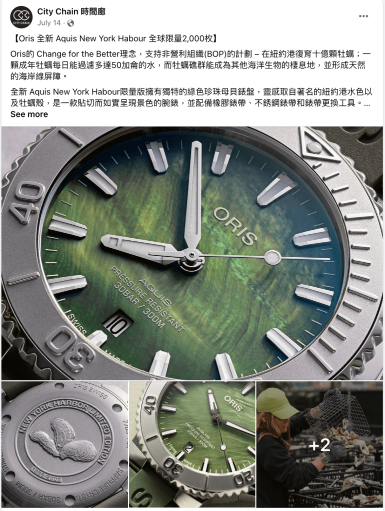 Oris 好似除咗有義工去幫手清蠔殼之外,仲用隻錶去帶保育呢個話題出黎的確係唔錯既做法。錶主應該點都會得個知字,朋友之間亦可能會傾,不錯唷~~~